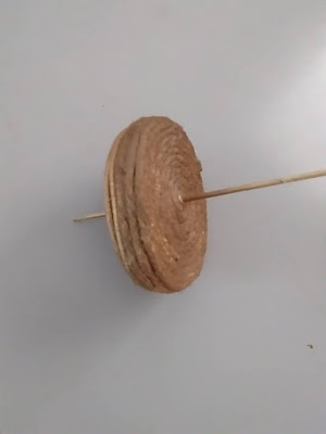 3. Cucuk lidi pada bulatan satu persatu dan lekatkan dengan menggunakan gam.